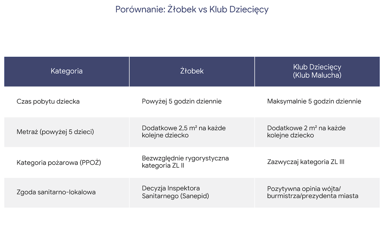 Na pierwszy rzut oka to samo, prawda? Otóż nie! Z formalnego i urzędowego punktu widzenia to dwie różne bajki (podstawa prawna: Ustawa z 4 lutego 2011 r.). Wybór między żłobkiem a klubem zdeterminuje to, jakiego lokalu szukacie i ile pieniędzy będziecie musieli w niego wpompować.